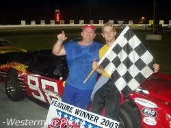 Three big crashes saw several cars eliminated, but McCafferty was able to hold off a very determined Jeremy Gerstner to score his second win of 2003. Gerstner added to his point lead with his second place finish while John Foerg came back from a crash with a lapped car to claim third.